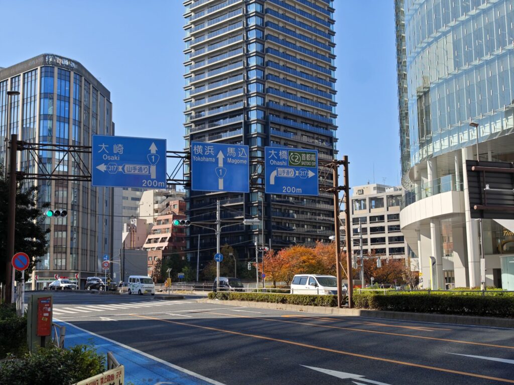 駅前ロータリーから第二京浜道路に出て五反田第一生命ビルディングの角を右折します。