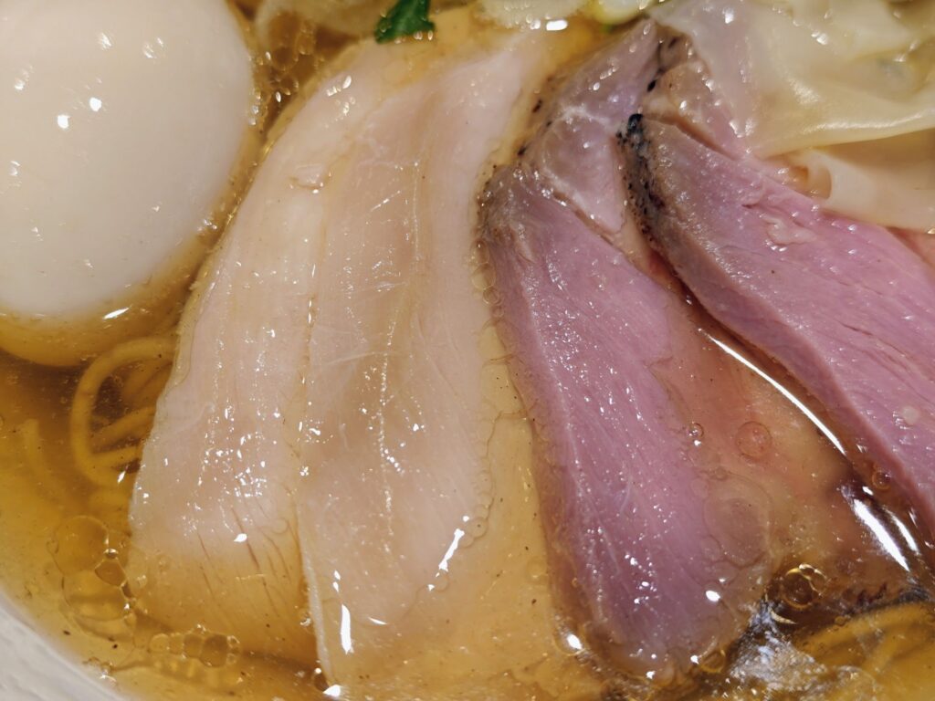 チャーシューは鶏むねと豚肩ロースの2種。しっとり感を残した低温調理系。