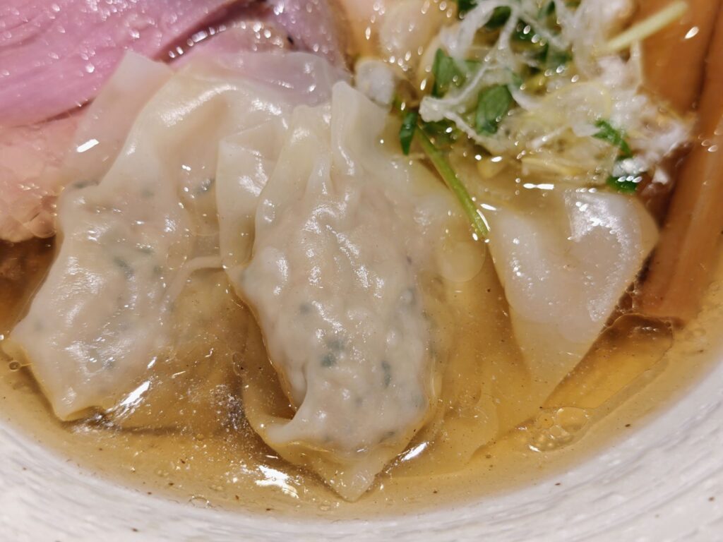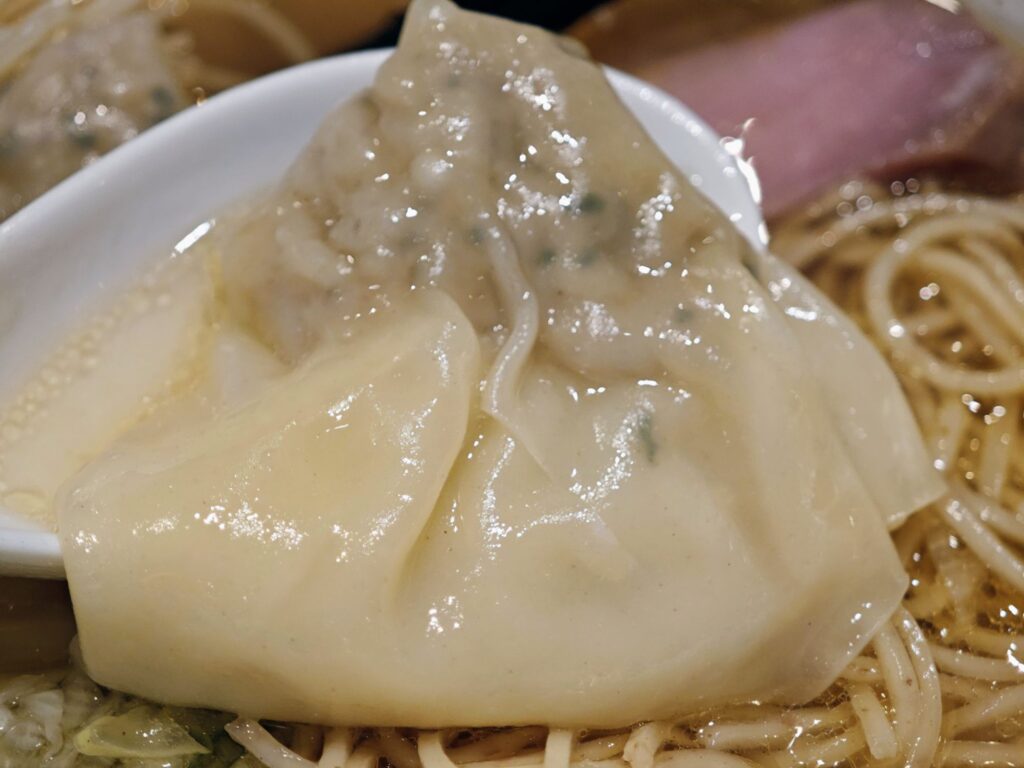 ワンタンは薄めの皮に対して粗挽きでゴロゴロとした肉餡という組み合わせ。豚肉のジューシー感の中に刻んだ紫蘇の清涼感がアクセントに。