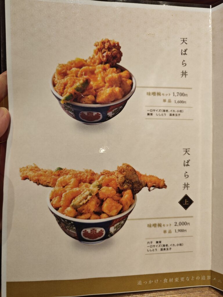 『赤坂 天ばら丼 星野屋』で注文したもの