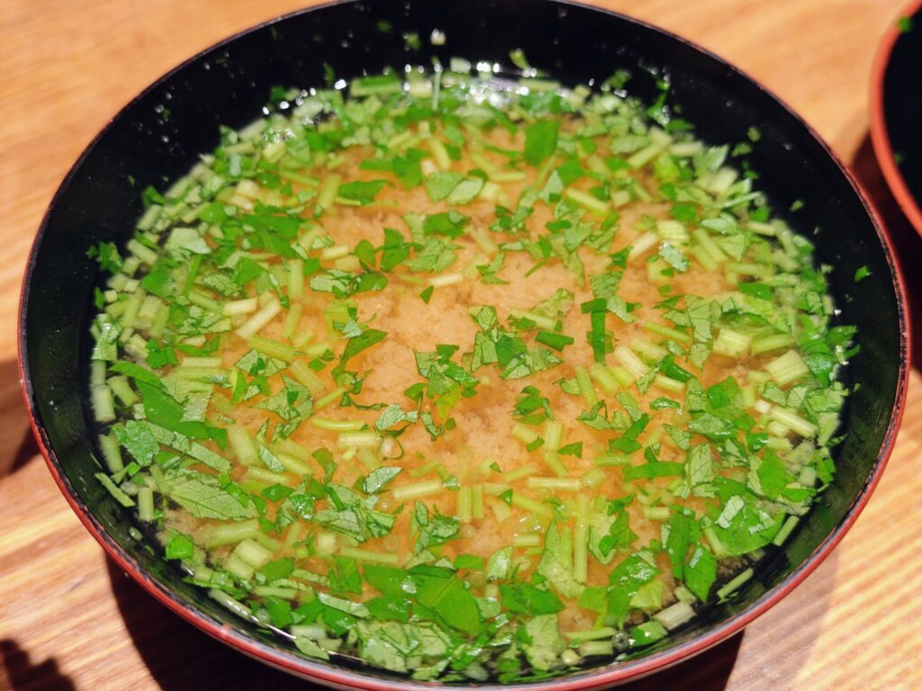 最後は味噌汁で口の中の油を洗い流してフィニッシュ!