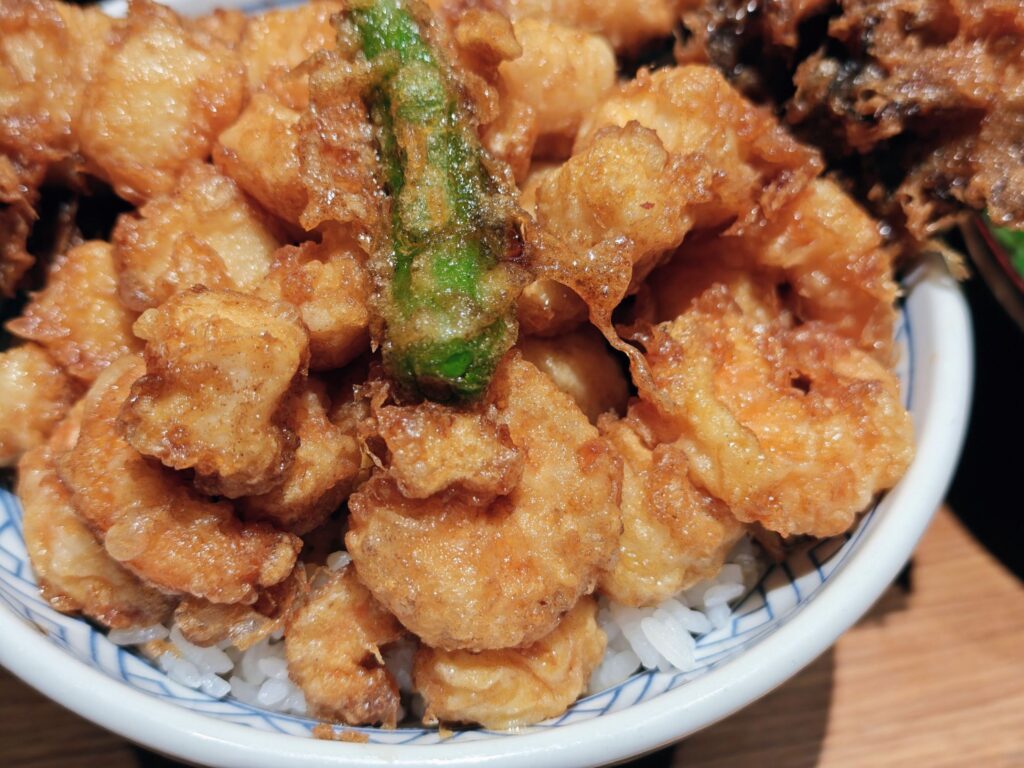 プリッと弾力感ある小海老、シコシコ感のあるイカ、ホクホクと甘い小柱が大変美味しい。