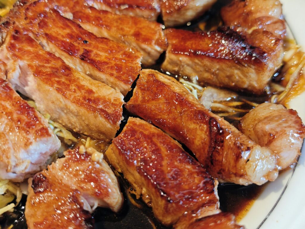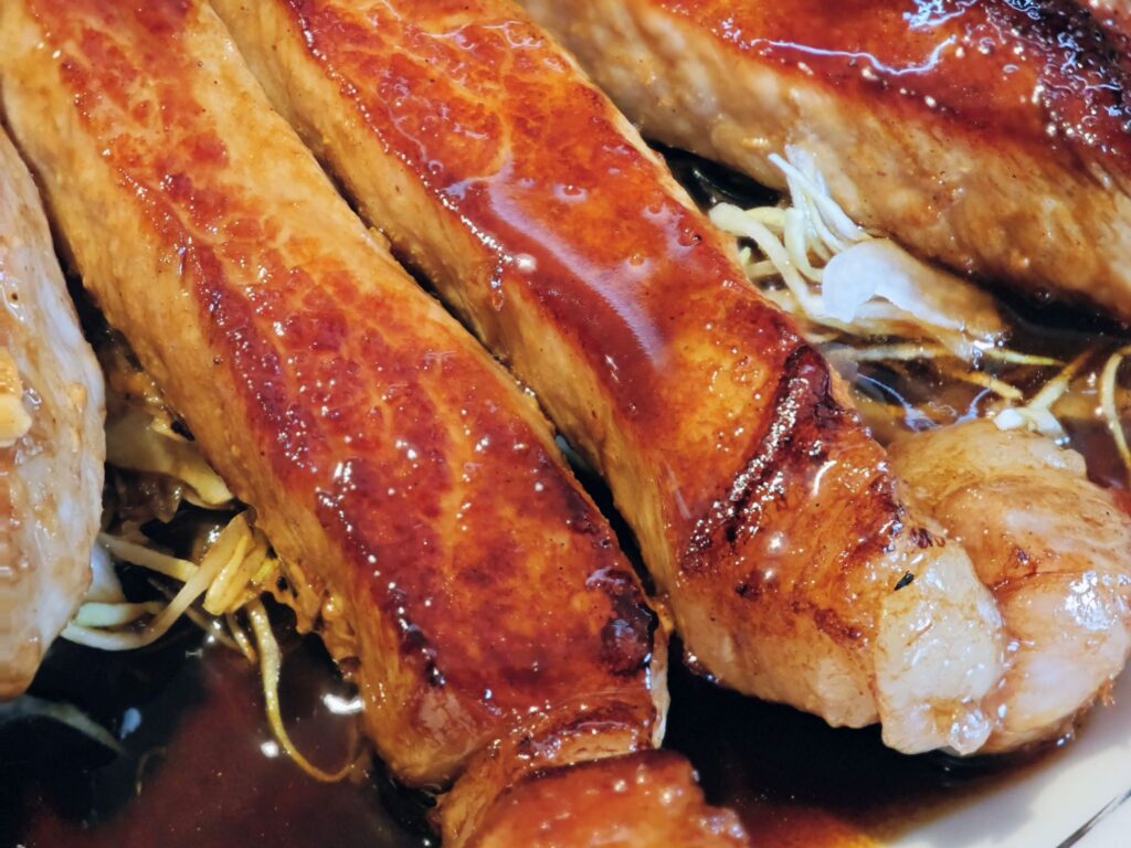 全身にソースを浴びて照り照りな豚肉があまりにも神々しい…