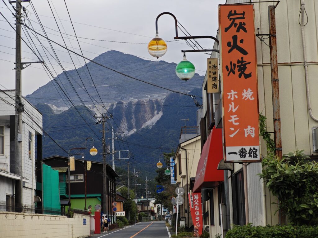 とりわけ秩父の主要産業であるセメント業の肉体労働者たちにスタミナ源として長年愛されソウルフードとなった背景があります。ちょうど『一番館』の店前からは日本国内屈指の石灰岩(セメントの原材料)採掘場である武甲山を望むことができますね。