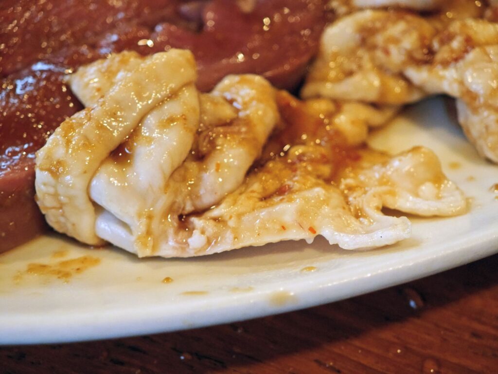 こちらは「ガツ」。脂身感はなくイカのようにコリコリとした締まった食感。