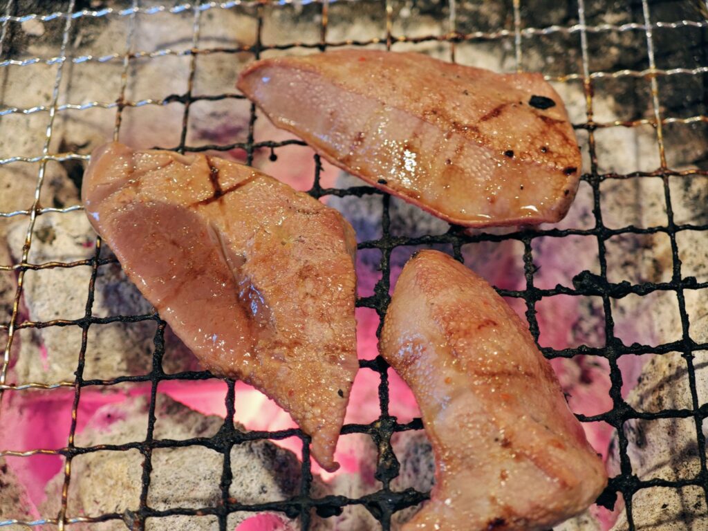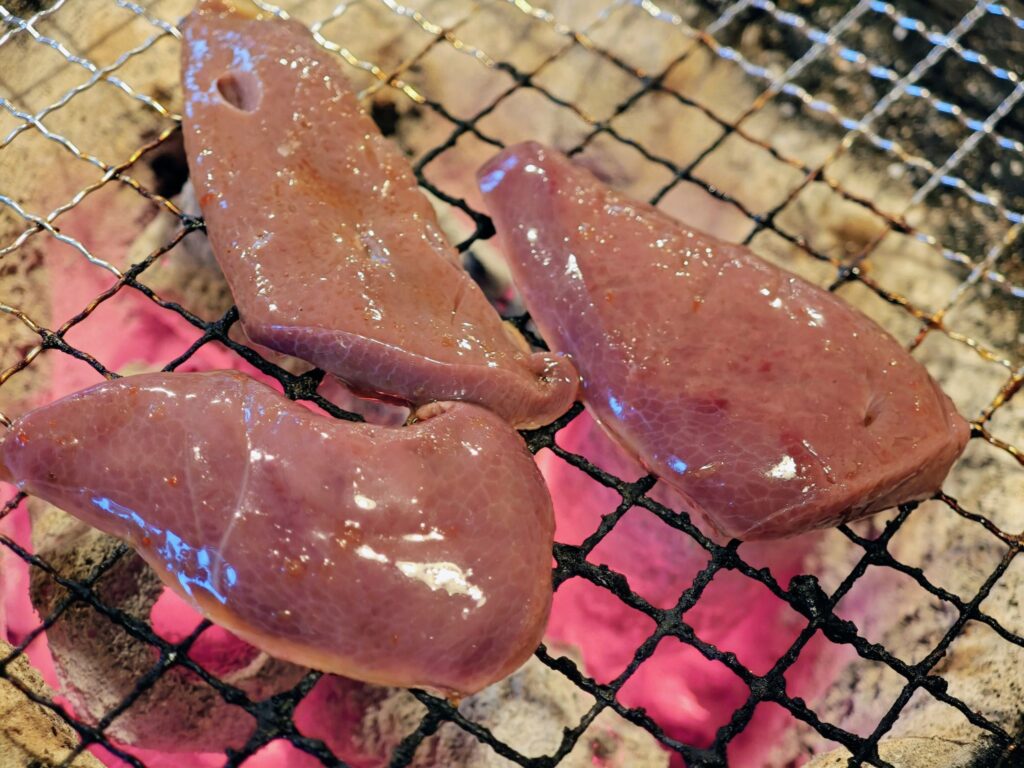 焼く前の姿は宝石のよう輝く新鮮な「レバー」。