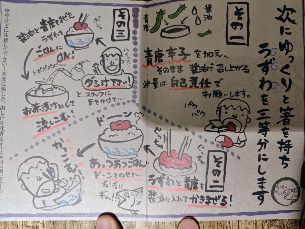 ご丁寧に「うずわ飯」の食べ方をレクチャーした紙が配布されるので初めてでも安心して食べる事ができました。