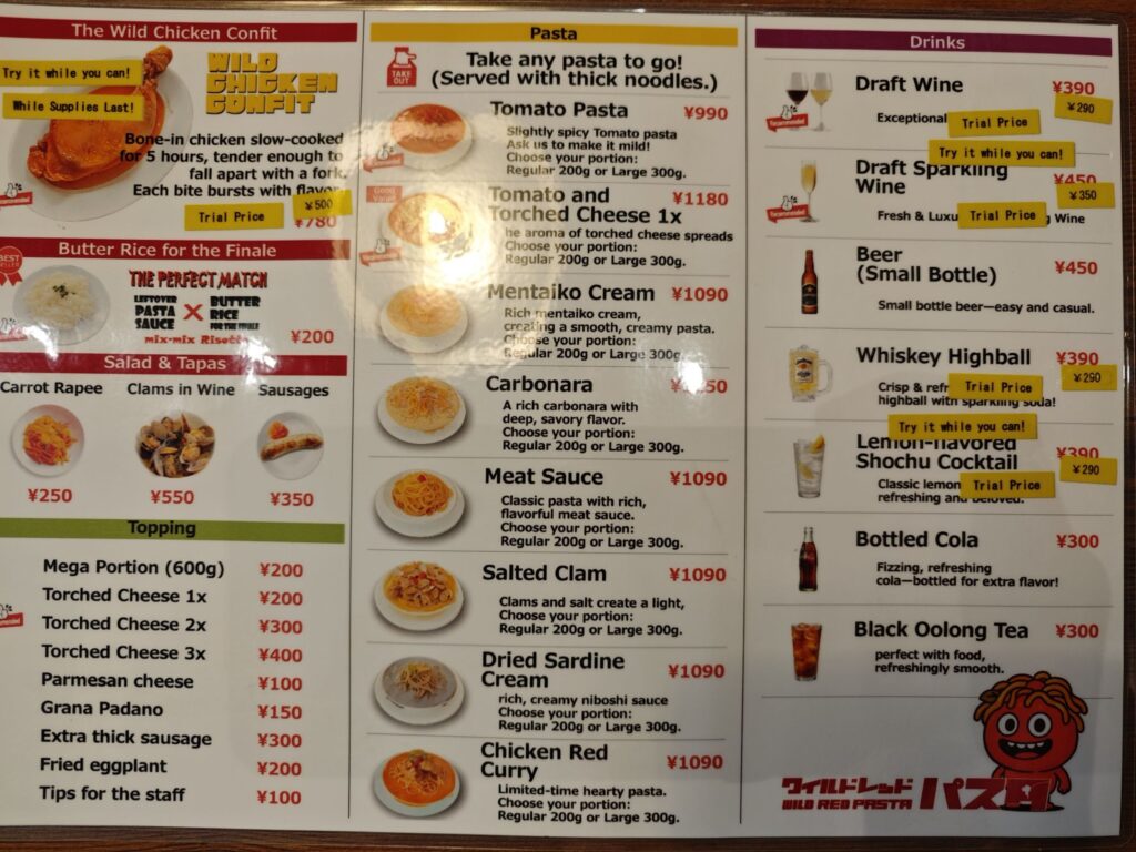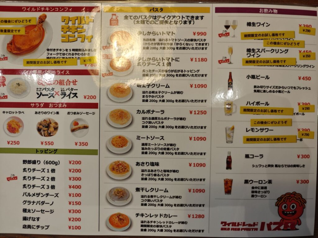 『ワイルドレッドパスタ 神保町店』で注文したもの