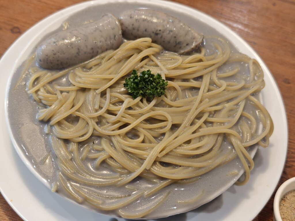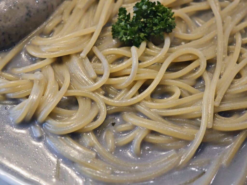 いま流行の兆しをみせるスープパスタの中でも衝撃的なビジュアルと濃厚な魚介の風味溢れる「煮干しクリーム」。かなり楽しめる一皿でしたよ。