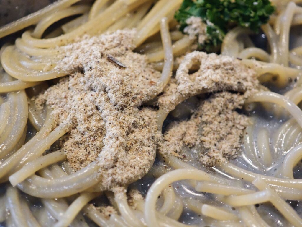 パスタにふりかけるとザラザラ感とともに煮干しの濃厚さにブーストがかかりニボニボ感MAX!煮干しマニアにたまらない一品を堪能できました!