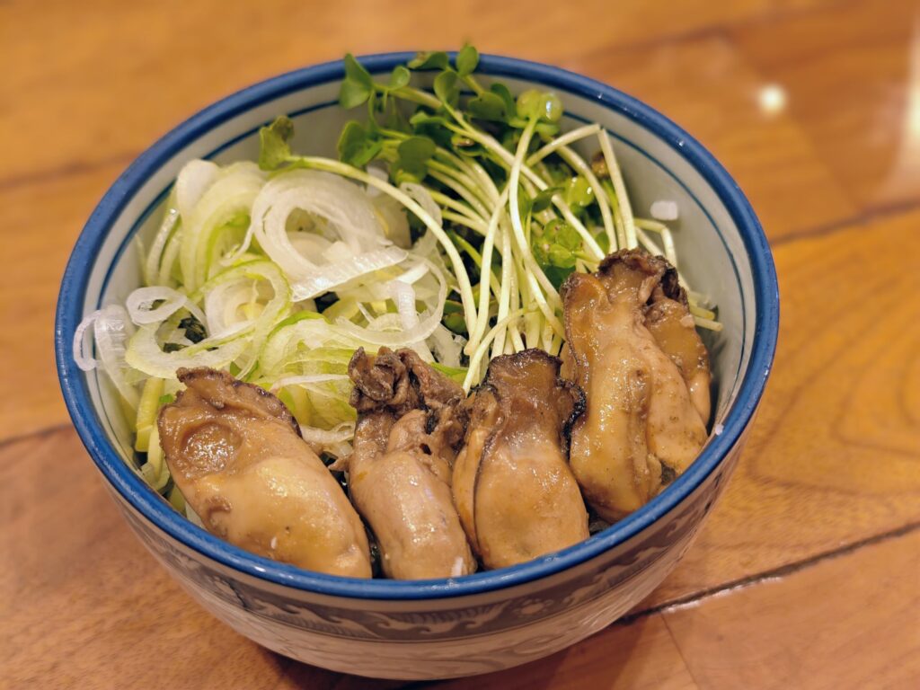 特筆すべき点として牡蠣を推している店らしく、牡蠣を2個単位で追加トッピングする事も可能。
