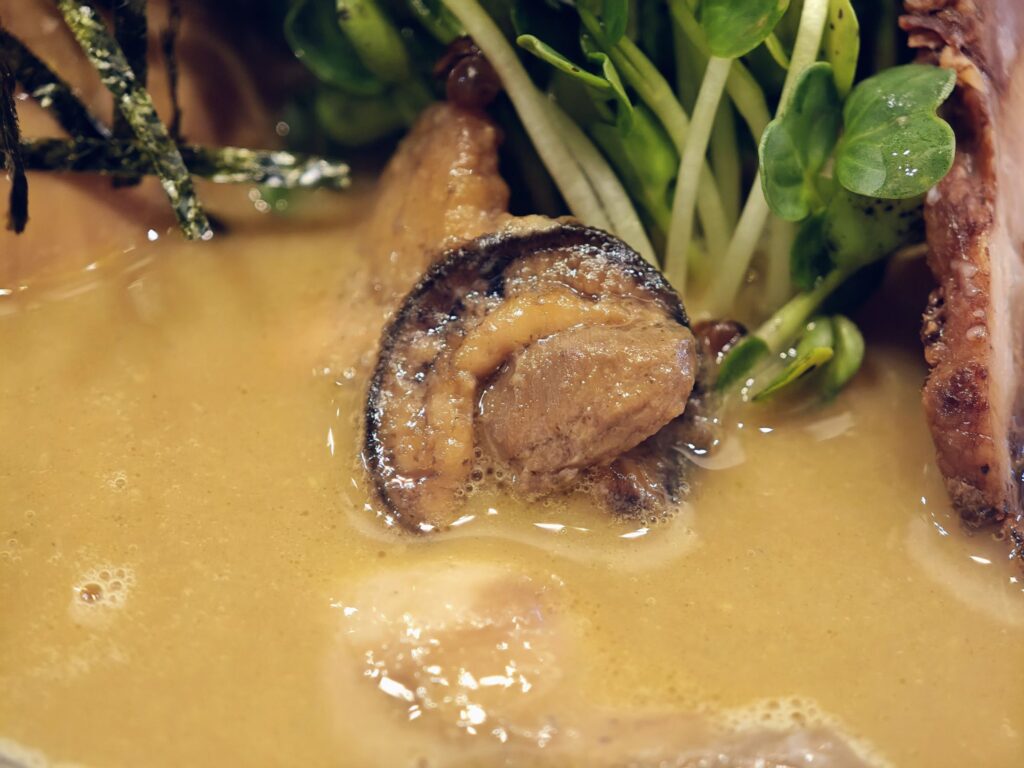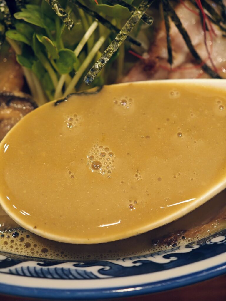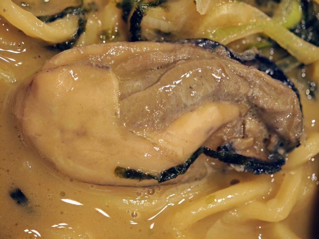 牡蠣を前面に押し出したドロッと濃厚なラーメンで界隈ではかなり有名で2025年12月末現在、食べログではラーメン百名店などには特に選ばれていないものの、一方でスコア「3.70」とかなり評価が高い。