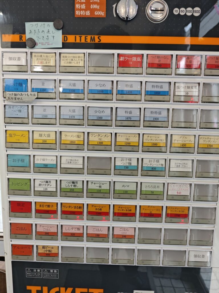 食券制で会計は現金のみ。食券機の横に両替機があり高額紙幣でも両替可能。
