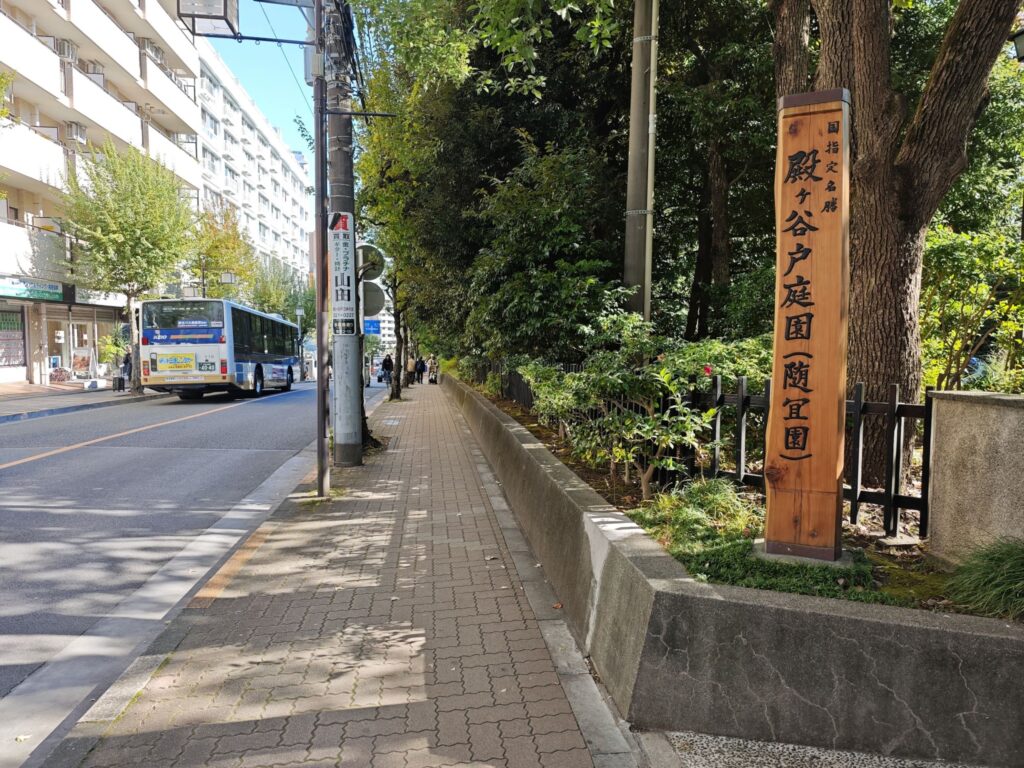 都道145号線を東へ。殿ヶ谷戸庭園の横を通過します。