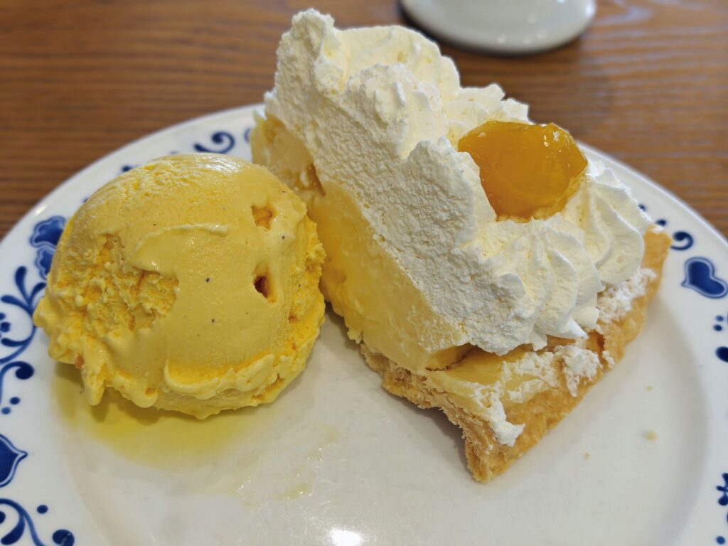 こちらは乳製品特有の風味豊かなミルキーな味わいです。個人的にバニラアイスクリームトッピングは強く推奨したいところ。
