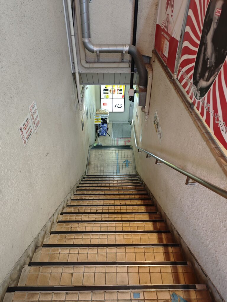 300mほど進むと道沿いに「味の散歩道」が見えてきたら地階へ。