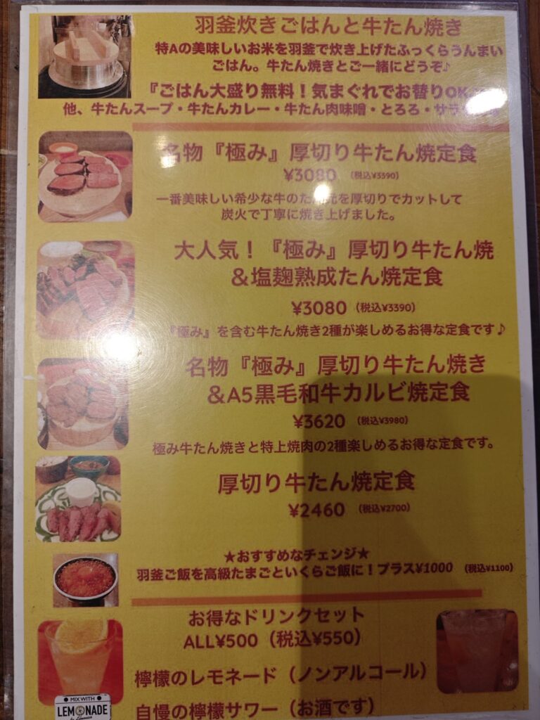 個人的には「『極み』厚切り牛たん」の方が好み。店のスタッフの方が非常に細やかな客席に目配りをしていて「お肉の火加減は大丈夫でしたか?」と声掛けしてくれます。