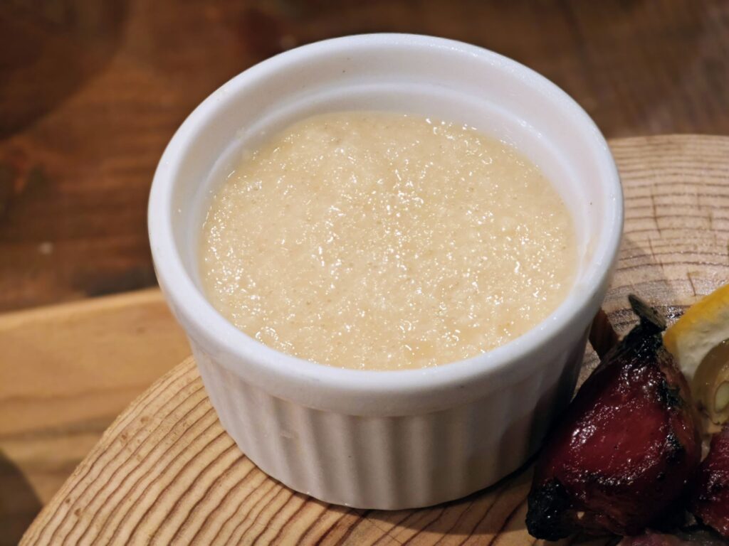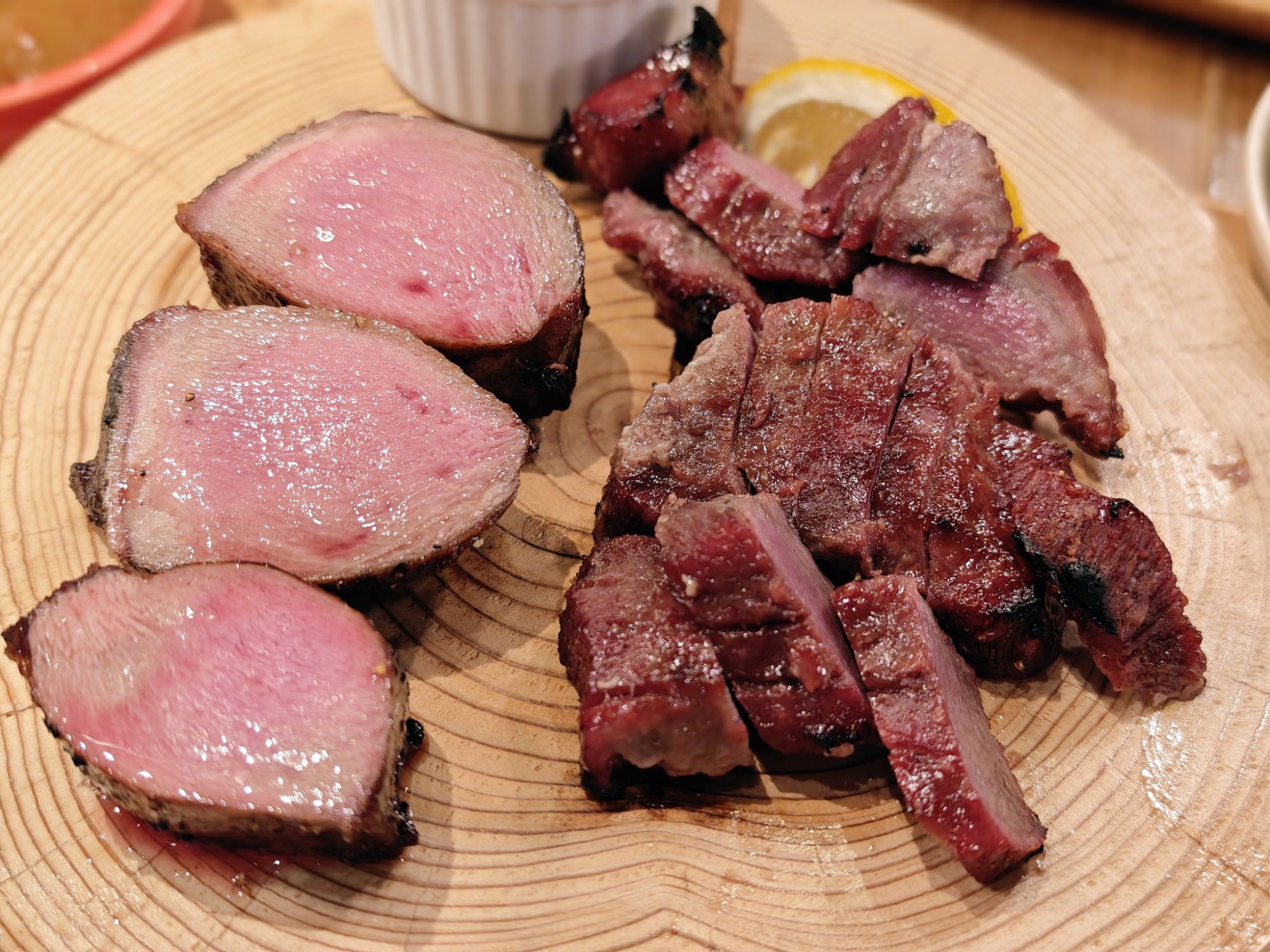 画像の通り肉厚でぶりんとした歯ごたえと強い弾力感があり、かみ締めると肉汁感ともなう濃厚な肉のうま味が感じられます。外側は炭火焼きになっておりスモーキーなフレーバーがたまりません。
