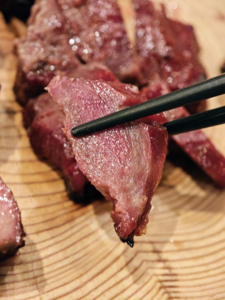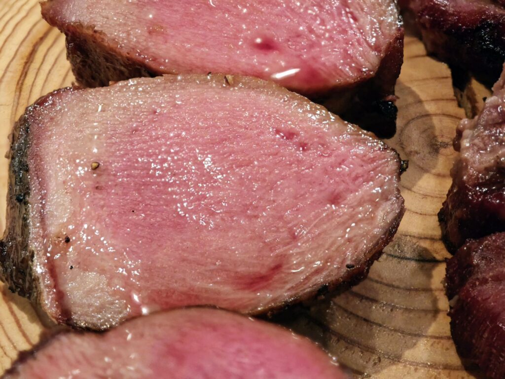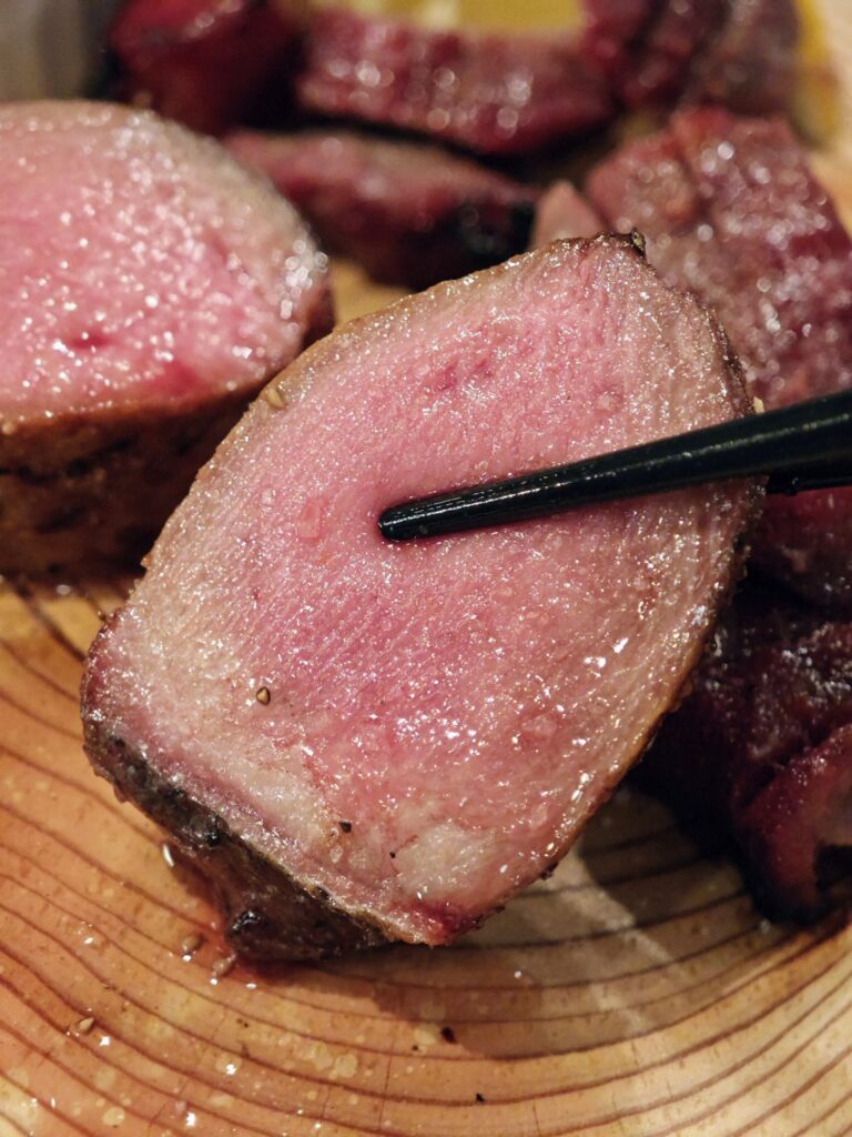 ロゼ色の断面に厚みのあるボリューミーな肉と見た目がすでに満点です。