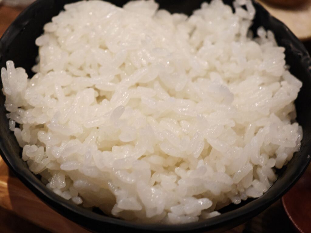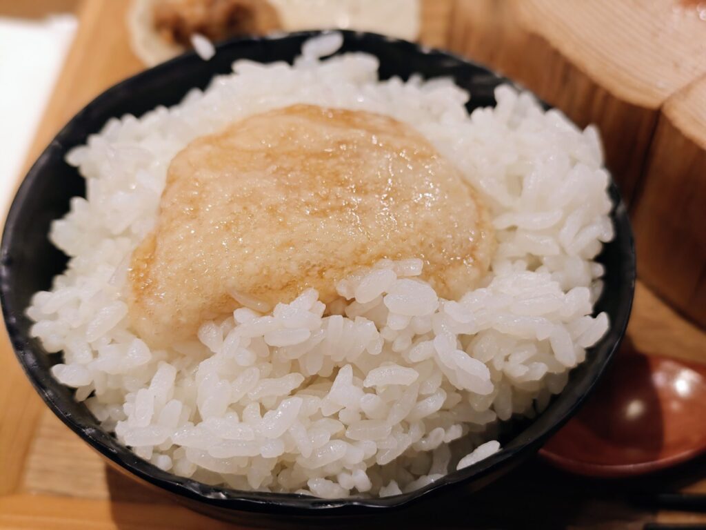 何気におかわり自由な白米がハイスペックで1787年(天明7年)創業の京都の老舗米問屋「八代目儀兵衛」の高級国産ブレンド米を羽釜で炊いたものです。