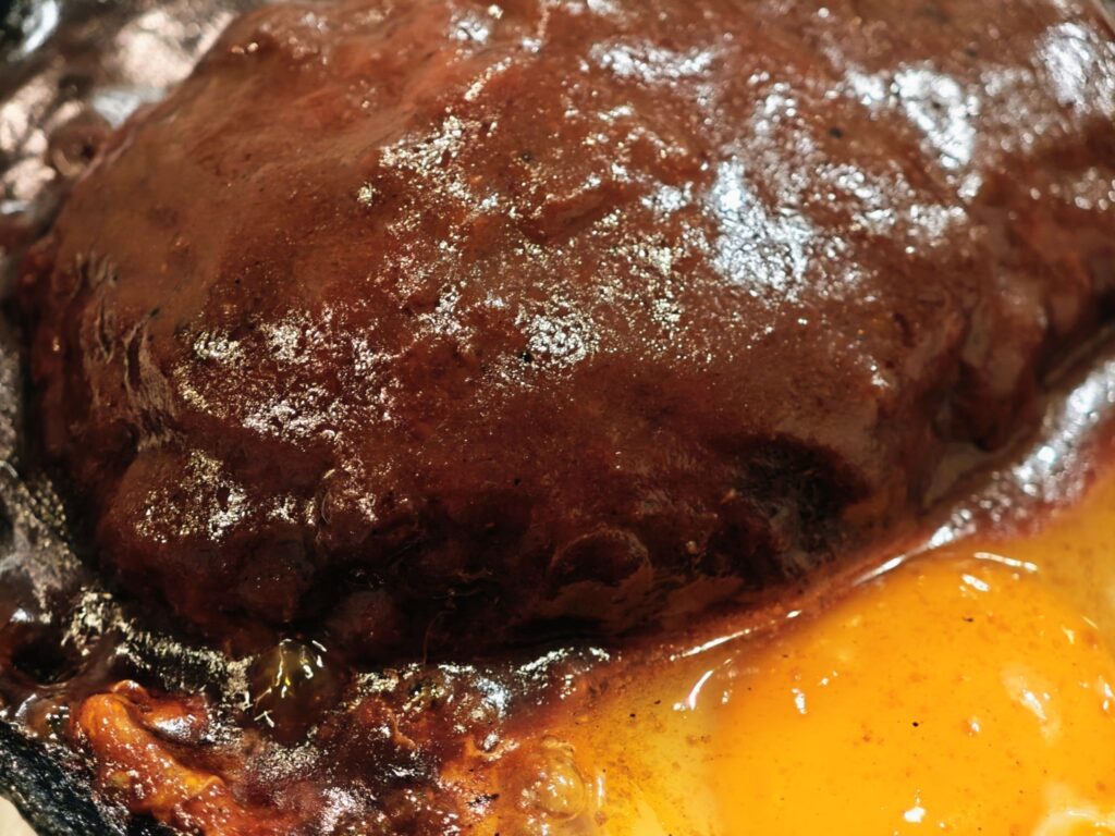 そのままのデミグラスソースが美味しいのはもちろんですが、敢えて言うと「鉄皿に焼かれて少し焦げた部分」もカラメル的な深みのある味わいが出ており乙で美味しいです!