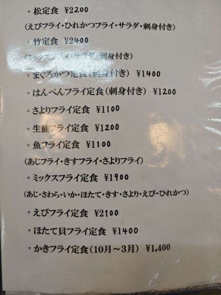 - 定番人気は「魚河岸定食」(フライ+刺身)や海鮮丼で、コスパが高い。