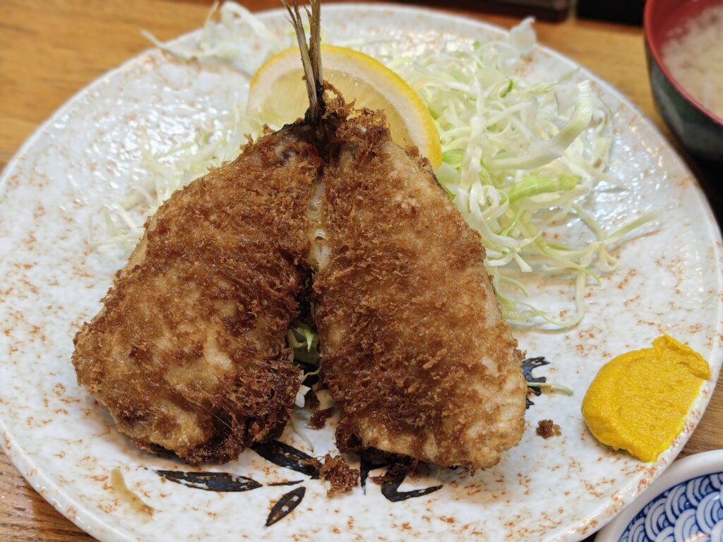 「沼津といえば」のアジフライ。一尾から単品注文できるのが嬉しいですね(定食もあります)。