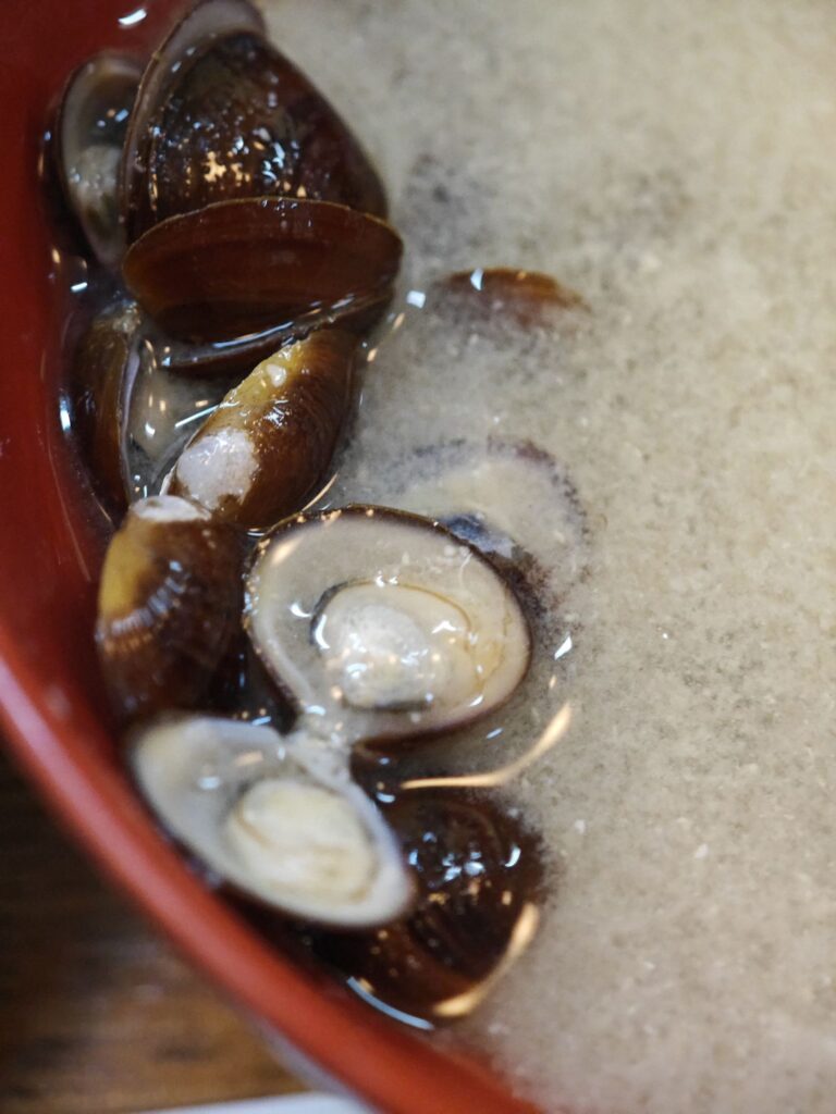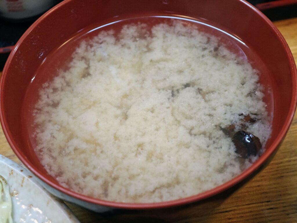 添えられた味噌汁も何気に蜆汁なのがポイント高いです。蜆の風味濃いめの味噌汁で美味。