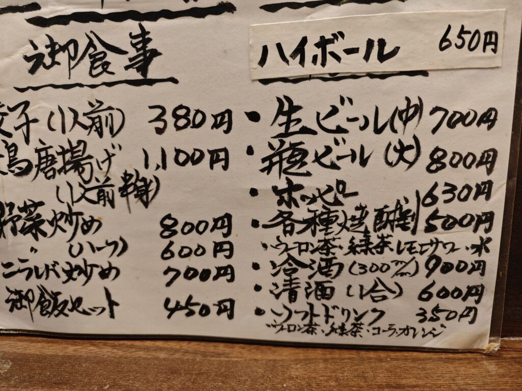 - メニューは餃子・若鳥唐揚げ・野菜炒め・ニラレバ炒めなどに絞られています。
