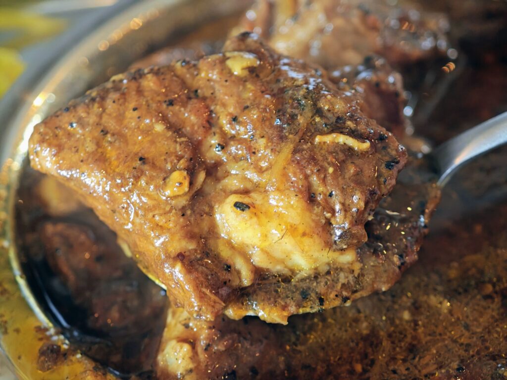 赤身肉らしい歯ごたえある食感もありつつ脂身のジューシーさも併せ持っています。大きなブロック肉でしかも2つも入っているので満足度かなり高めです。