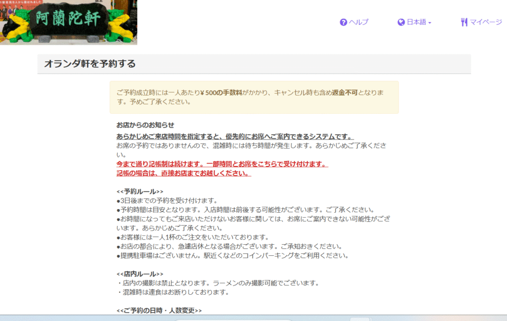 手数料が500円かかりますが、tablecheck導入によって訪問難易度もかなり下がっていますので是非お試しいただきたい。