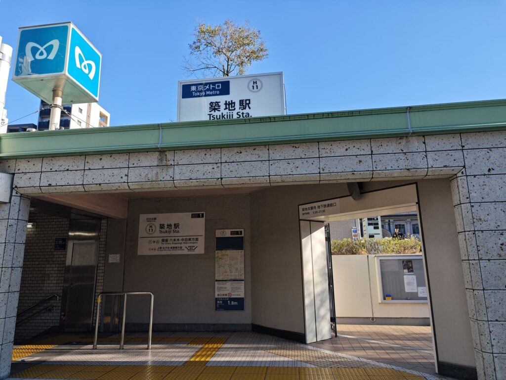 築地駅からの所要時間は徒歩5分ほどです。都営大江戸線の築地市場駅からも徒歩圏内です。