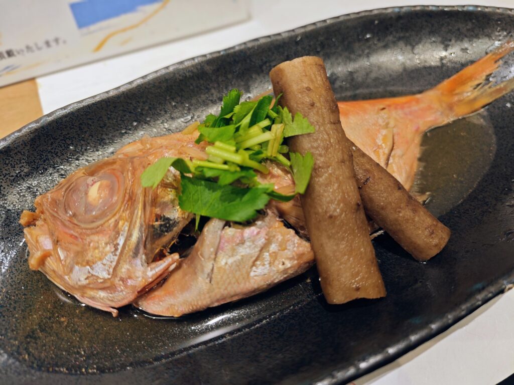 鰹ベースの優しくマイルドな出汁がカサゴの身にしっかり浸透して味が染みています。ほろほろと箸で簡単に骨から外せるほどの柔らかさで大変美味しかったです。