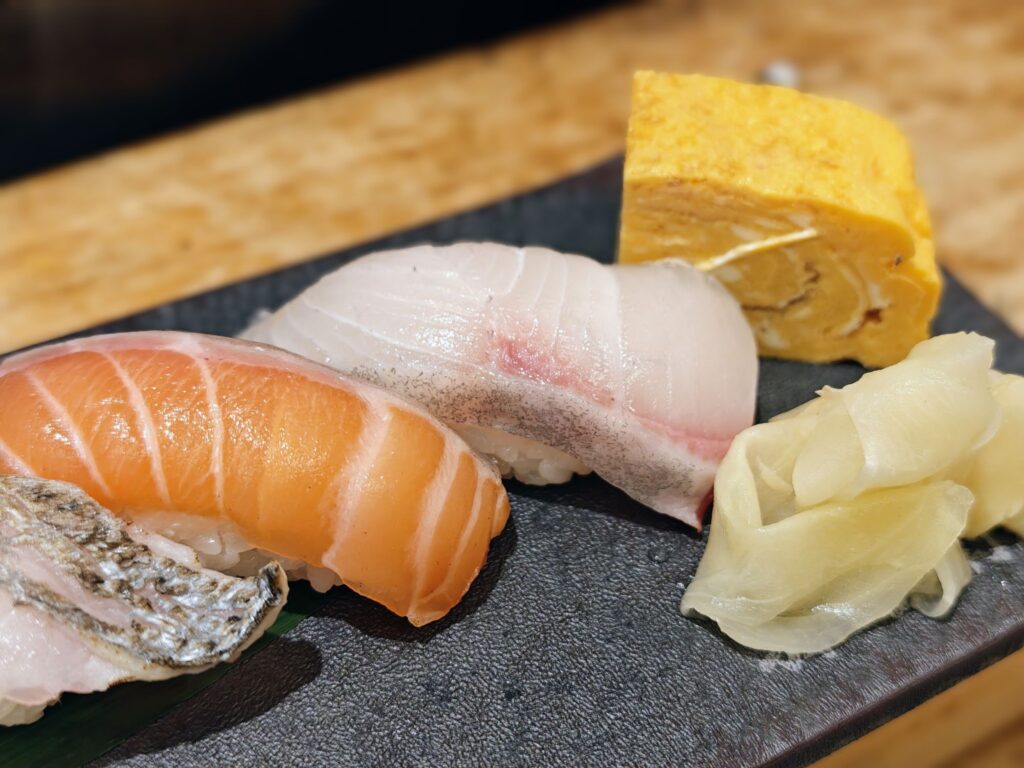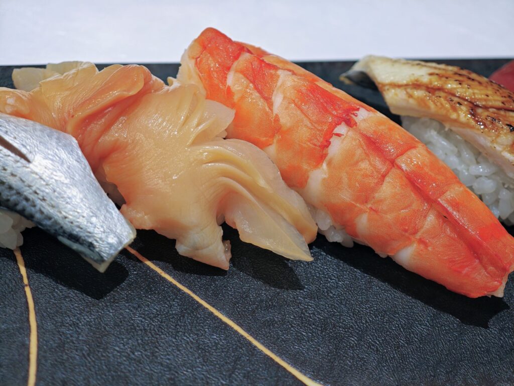 強めの甘味と肉厚で柔らかい「ホタテ」、見た目に反してスジ感がない「サーモン」、さっぱりとした甘味とモチモチ食感の「平目」といずれもクオリティ高し。
