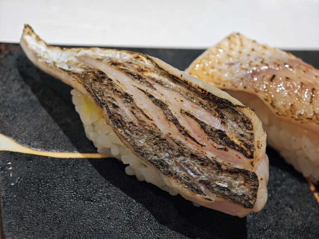 まずは「カンパチ」。モチッとした歯ごたえと雑味のない品のよい甘味、冬の時期ならではの脂の乗った身肉が最高。